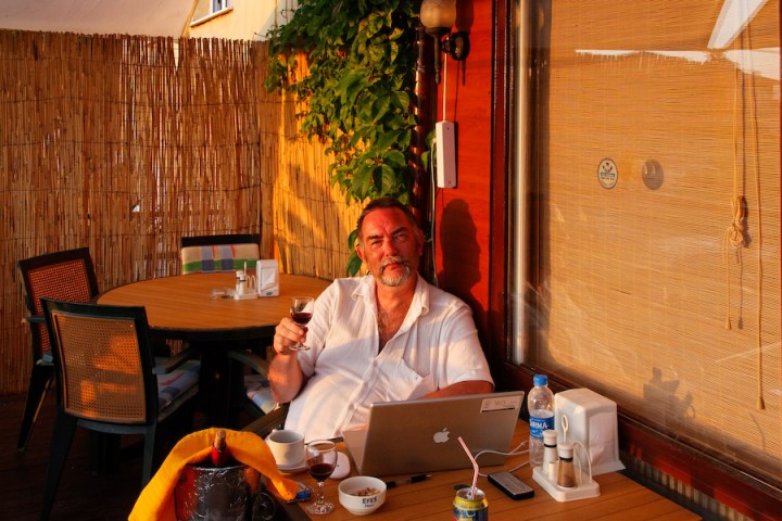 eg sitter alene på verandaen mens resten av gjengen har tatt en tur til byen for å shoppe. Enkelte ganger kan det være greit å la damene rå seg selv. Alle de butikkene de vil gå innom er ikke akkurat det jeg setter høyest. I stedet tilbringer jeg kvelden her på hotellet og har akkurat fått besøk av Cem(sønnen til hotelleieren) og en av hans kjenninger som spiller på det tyrkiske ungdomslandslaget. De disker opp med nøtter, ost og vin. Var det noen som sa ferie?