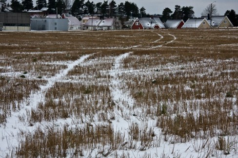 Spor i snøen. Her har nok bonden vært for du kan jo se spora. Bildet er et år gammelt og jeg så det da jeg gikk en tur for å møte kona på jobb i fjor i vinter. Mye snø var det ikke, men det er vi jo vant til etterhvert i Halden, eller på Sommero som dette stedet heter.