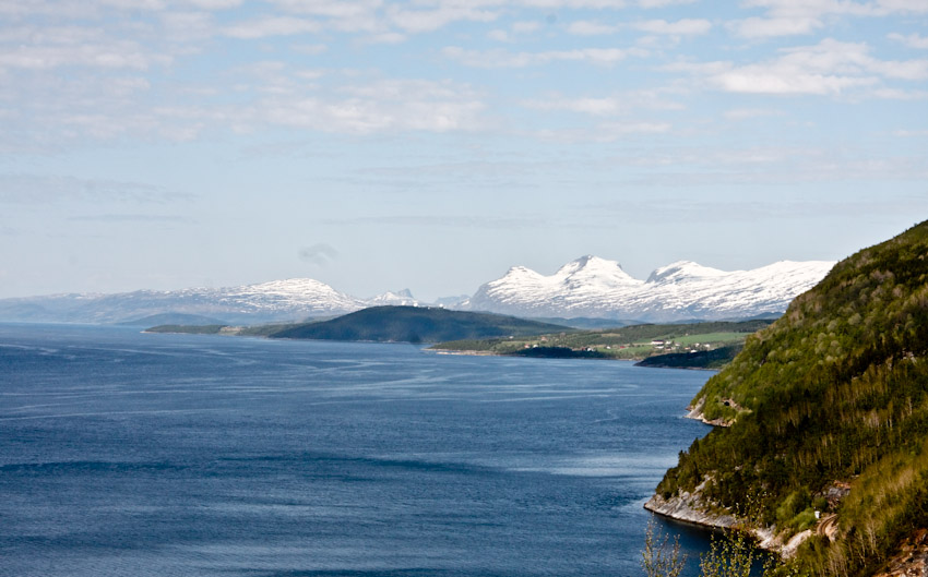 Turen opp hit har vært en tur gjennom postkortlandskap hele veien. Sola har skint og landskapet har vist seg fra sin flotteste side. På fergekaia ved Bognes pratet jeg med en danske som hadde tatt tidlig ferie for å slippe all trafikken senere på sommeren, og han var utrolig fornøyd over landskapet så langt. Han og familien var på vei til Nordkapp og deretter Kirkenes før turen skulle gå gjennom Finland og Sverige hjem igjen.