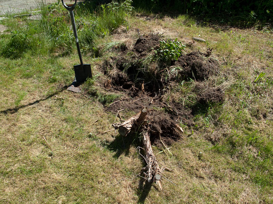 I all sommervarmen kom det et plutselig anfall av arbeidslyst over meg og jeg lot meg rive med – lettlurt type:-) Hadde ikke noe globoid eller febersettende i nærheten så jeg tok spade og øks og gjøv løs på rota etter en enerbusk som hadde vokst seg stor.