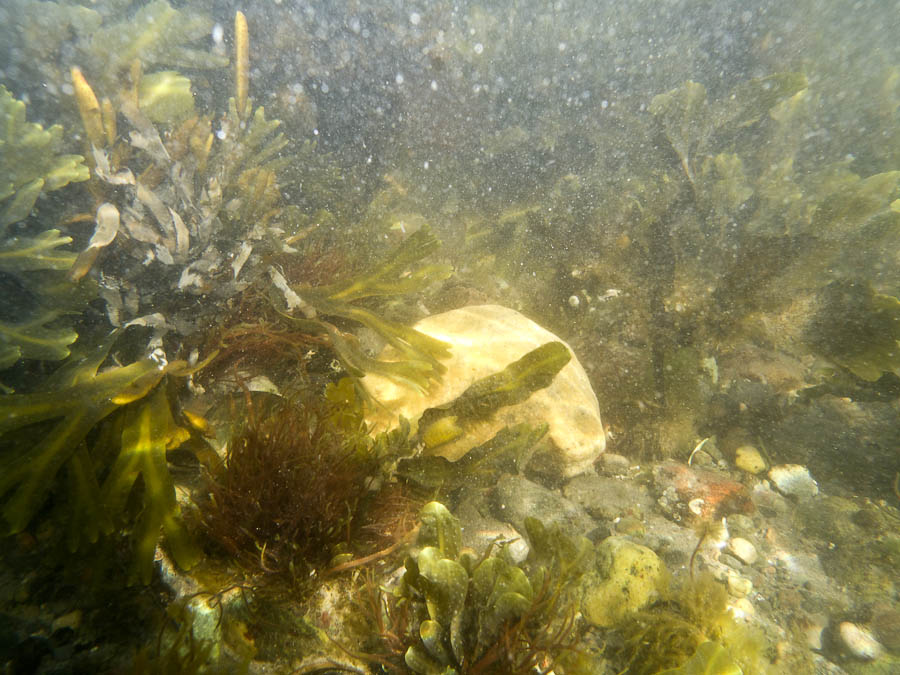 I dag prøvde jeg det nye Canon undervannshuset(WP-DC28) jeg har kjøpt. Jeg vasset bare ut i vannet her og tok bilder i fjæra. Vannet var altfor grumsete til at det ble noe bra, men jeg fikk testet huset og det fungerte utmerket. Blir det like fint vær i morgen så skal jeg ta meg en liten svømmetur og da kan det bli flere bilder.