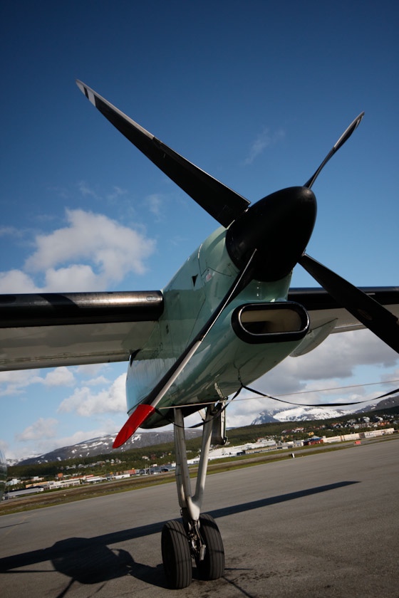 På vei ut til flyet holdt jeg kameraet i hånda og siktet ikke noe særlig, men fikk dette bildet av propellen. Denne skulle snurre mange ganger innen vi kom oss til Banak flyplass.