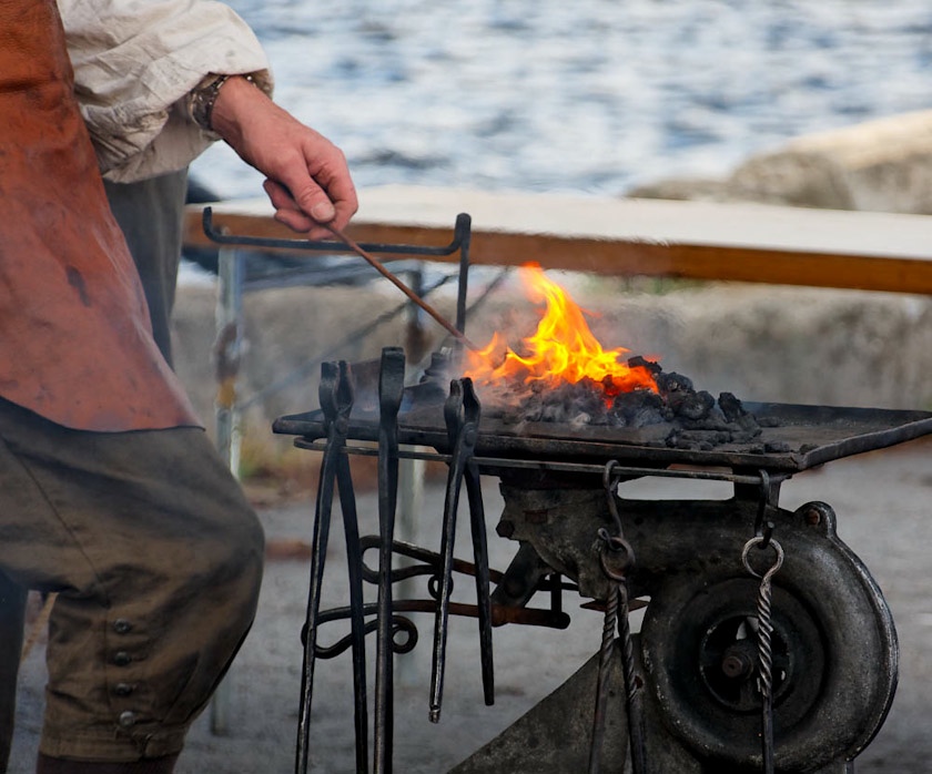 Jeg satt her og tittet på bilder jeg har tatt i det siste og kom til dette her av smed som jobber med en liten portabel smie. Det var utrolig hvor effektiv den var og hvor mye varme han fikk ut av lite kull. Smede kunne også fortelle at det i gamle dager på seilskutene var vanskelig å få tak i smeder og derfor fikk de gjerne ikke landlov når de kom til kai med skuta. De ble nemlig ofte kidnappet av andre skip.