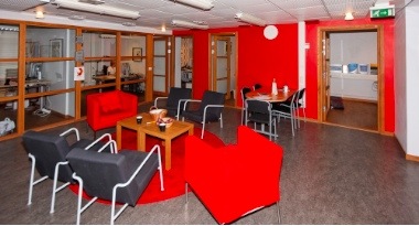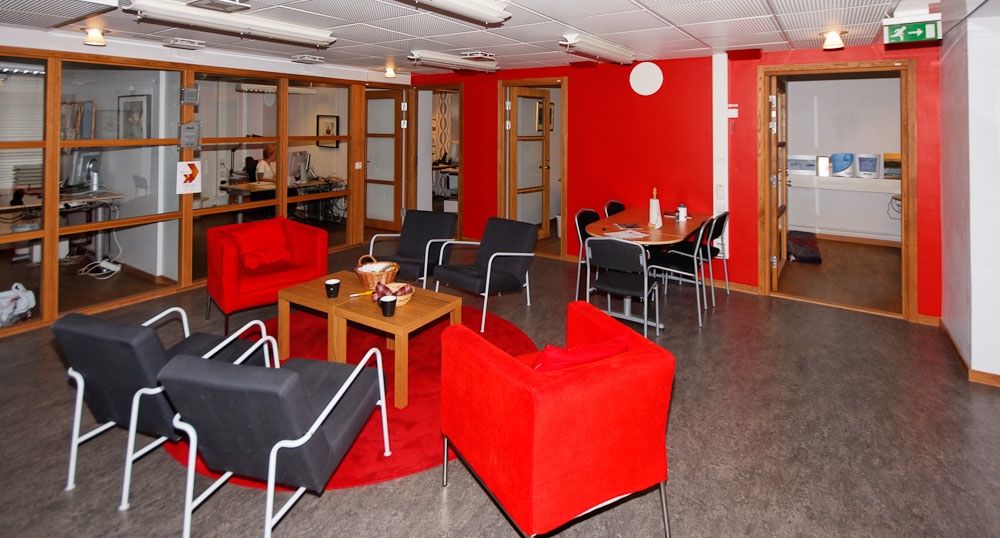 Fellesområdet som alle kan se ut til fra sine kontorer.