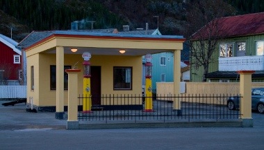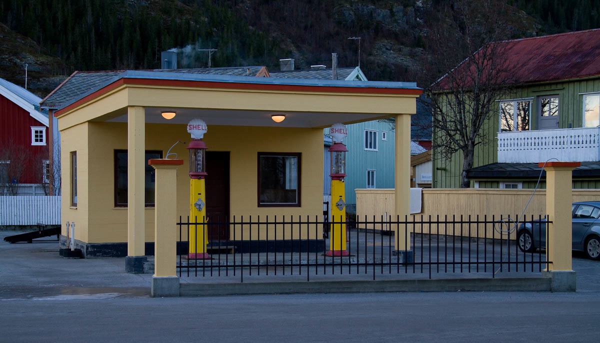 I går i Mosjoen fikk jeg se denne artige Shellstasjonen og måtte jo ha med et bilde av den. Det er vel neppe bensin de selger her i dag, men stasjonen ser velholdt ut.