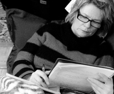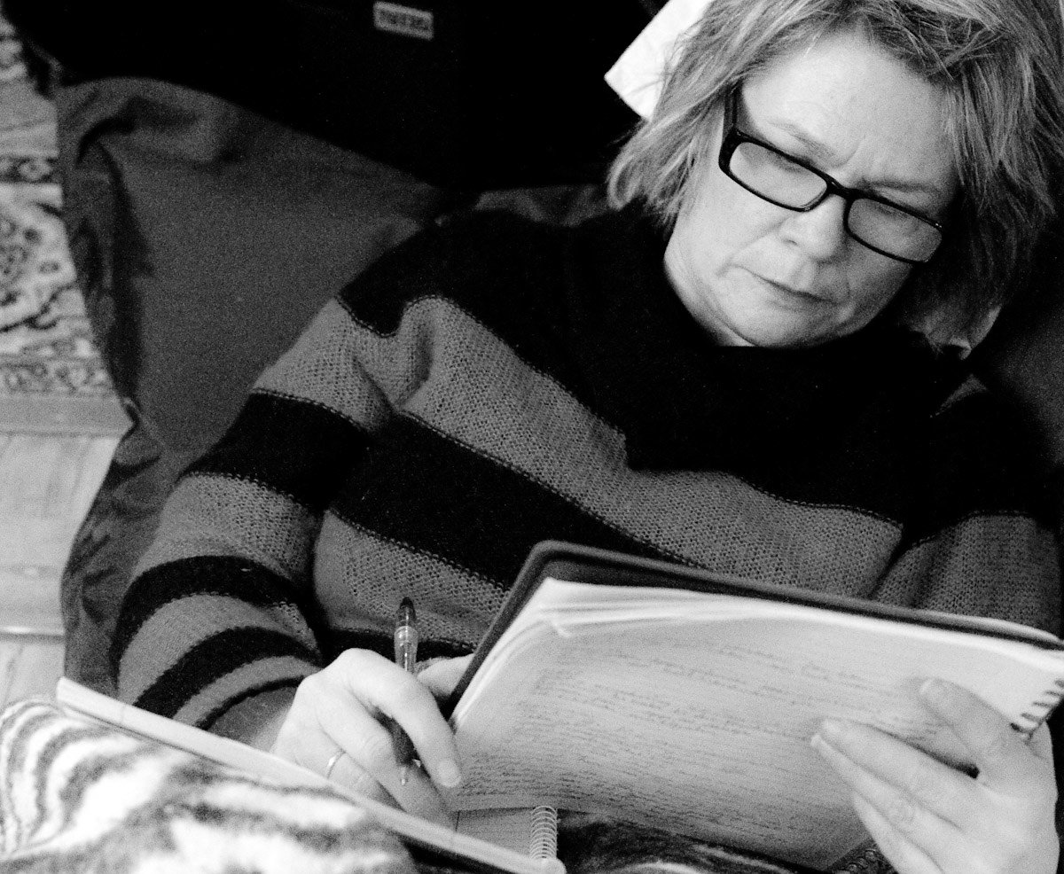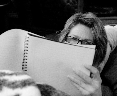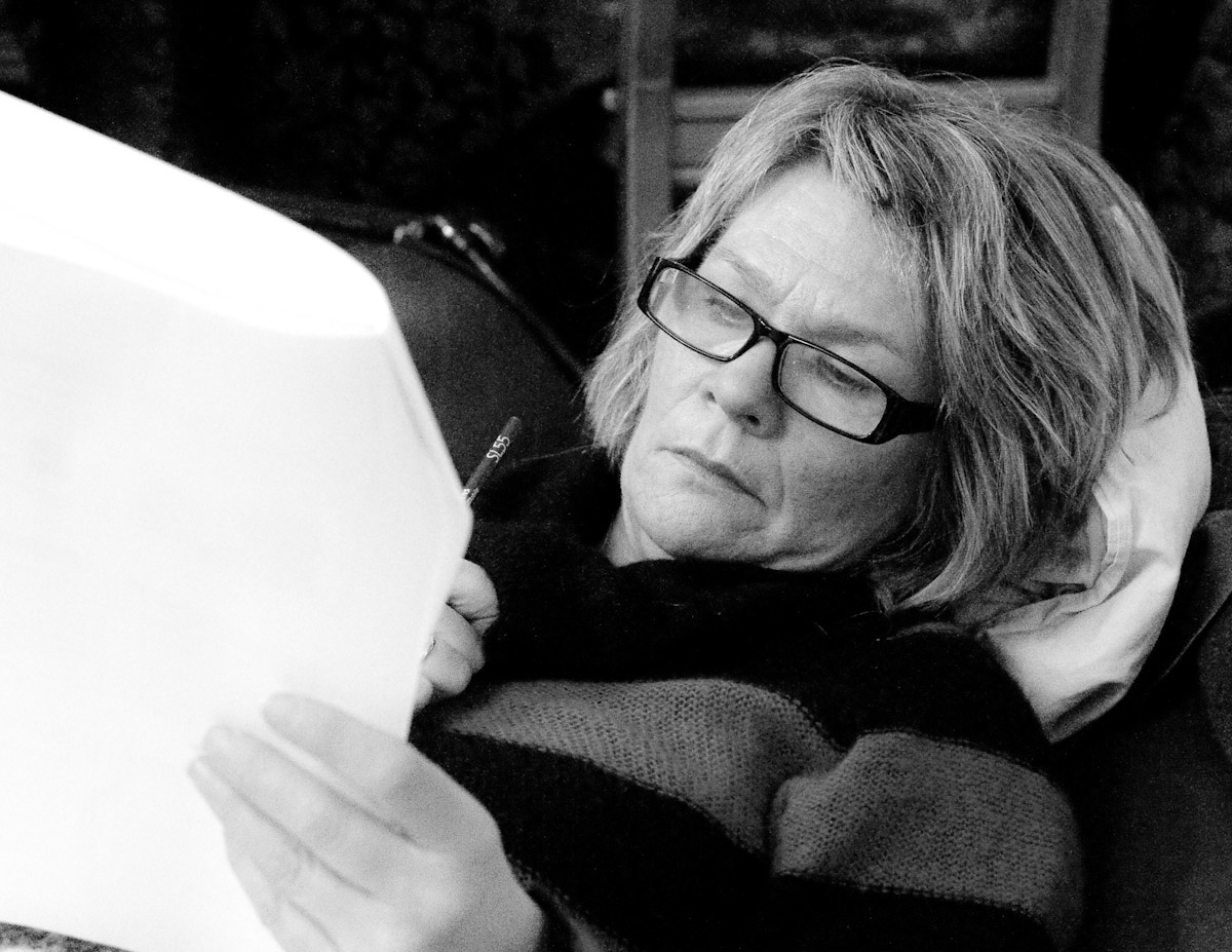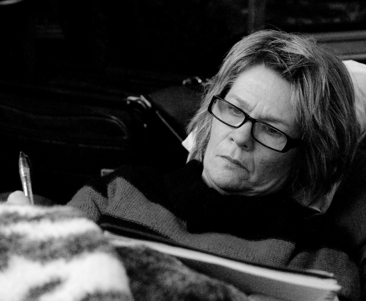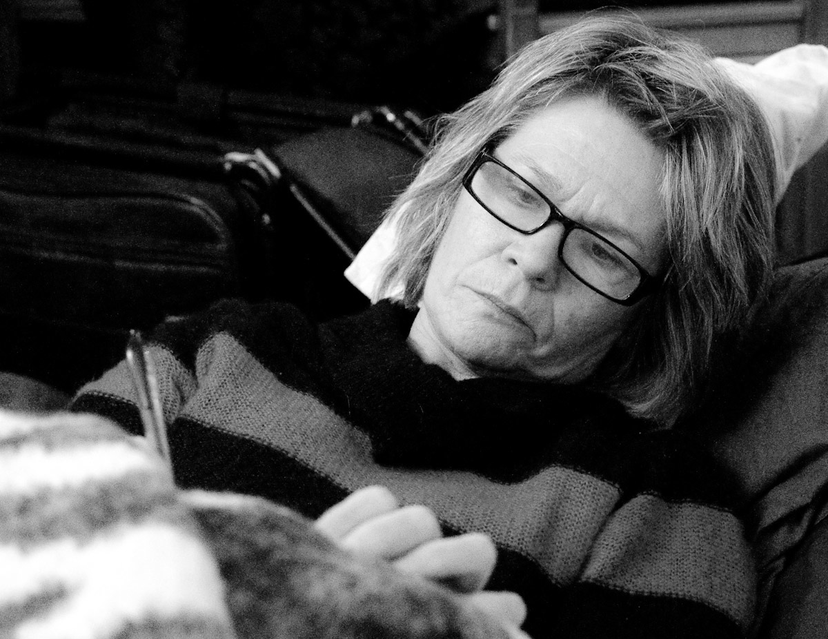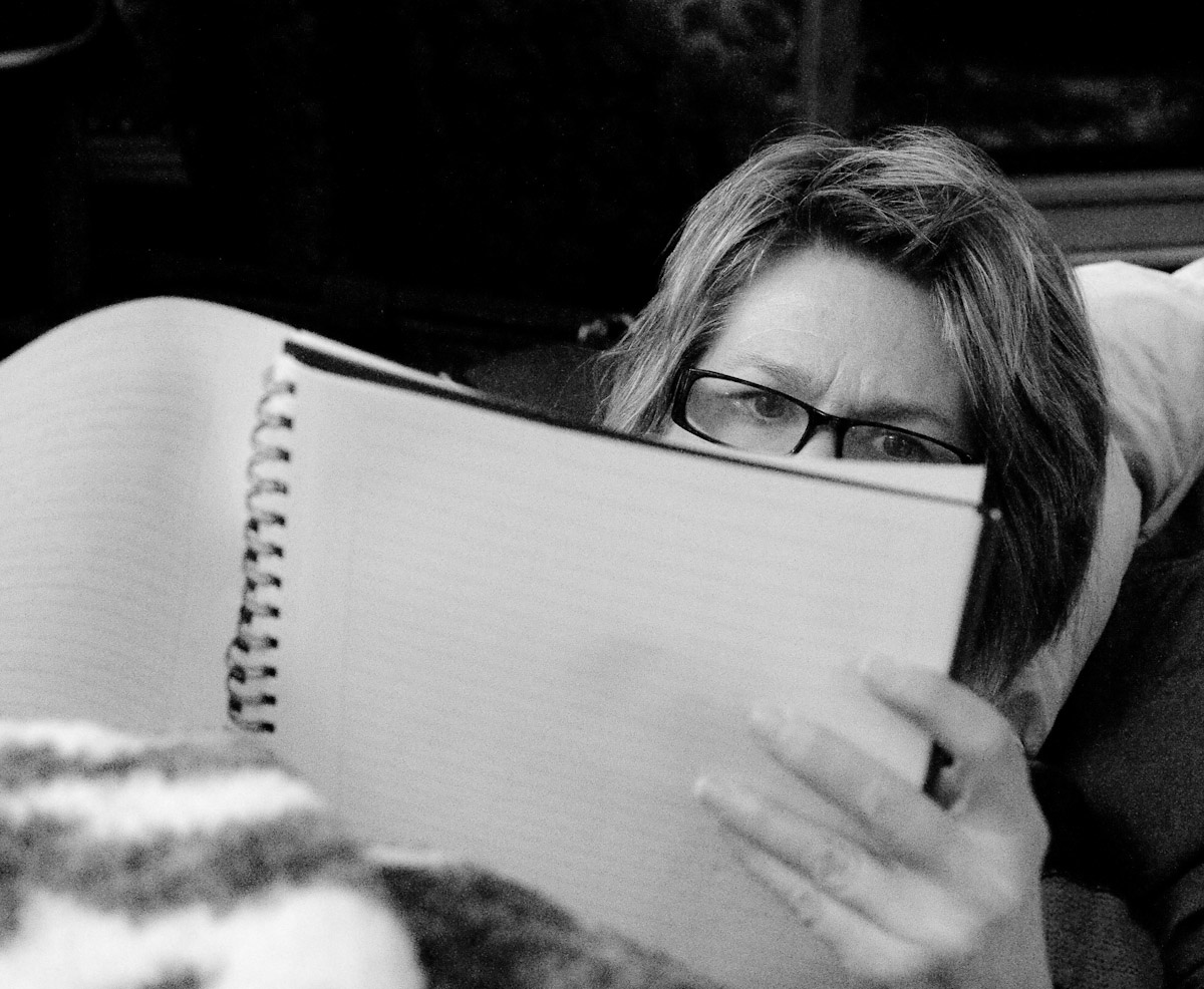 For å teste dette rettet jeg linsa mot kona som lå på gulvet på sin Fatboy og leste lekser. Inne i TV-stua har hun lagt i fra seg Fatboyen og inntatt lesestilling.