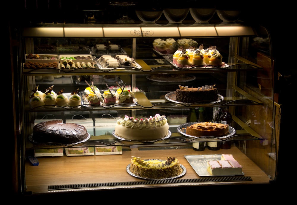 En fristende kakedisk møtte meg da jeg ankom lokalet i går kveld for å være med på konserten til Claes Neeb. Jeg skulle ta bilder og filme for ham. Konditoriet har også begynt med tilstelninger på kvelden og på den måten hatt en kraftig utvidelse av tilbudet sitt. Konserter på kveldstid med alle rettigheterogså konditorvarer er ikke dårlig det.