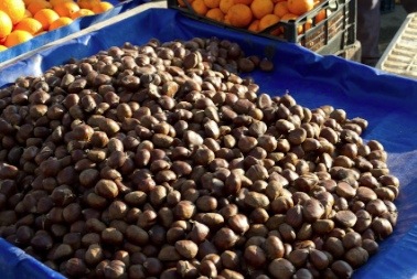 Store mengder kastanjer så vi flere steder og vi tok med en del hjem.