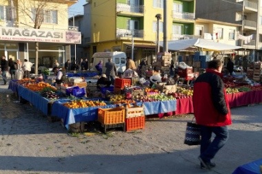 Saraköy-markedet trekker mye folk og det var et stort område av sentrum som ble benyttet til dette.