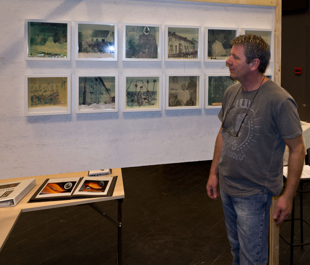 Her står Tom Andreassen og titter på noe av den realtivt store utsillingen de hadde fått til.