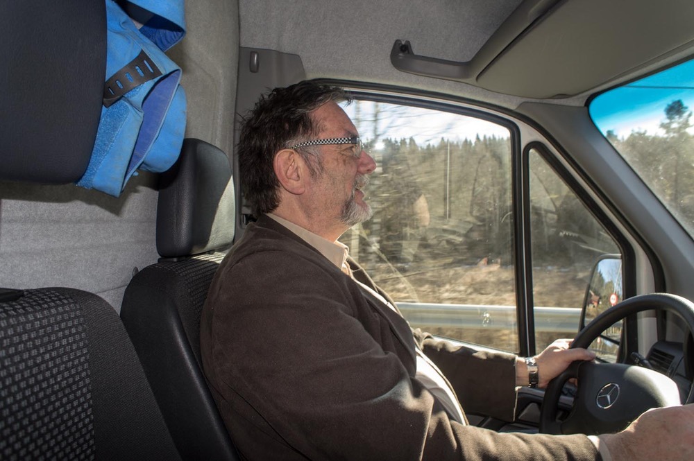 Denne uka går det 73. biblioteksmøtet av stabelen i Stavanger og her er vi på vei dit. Det var mye varer som skulle bortover og leide en Mercedes Stprinter fra Oslo Varebilutlei. En meget god bil å kjøre. Her er det jeg som sitter bak rattet.