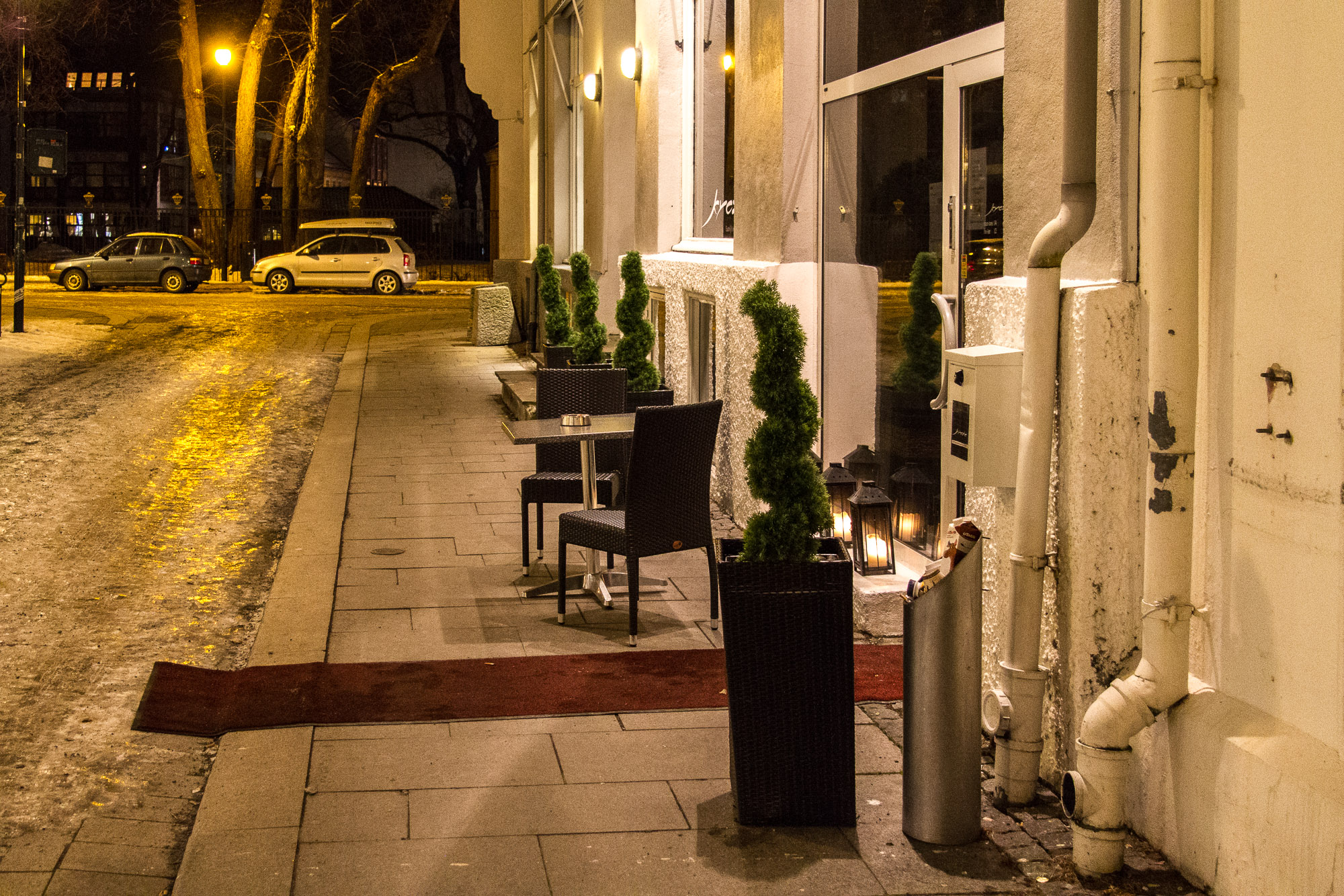 Ved denne baren var løperen rullet ut og bordene sto ferdig for dem som ønsket seg litt ekstra luft i denne kalde kvelden. Hver sin lyst.