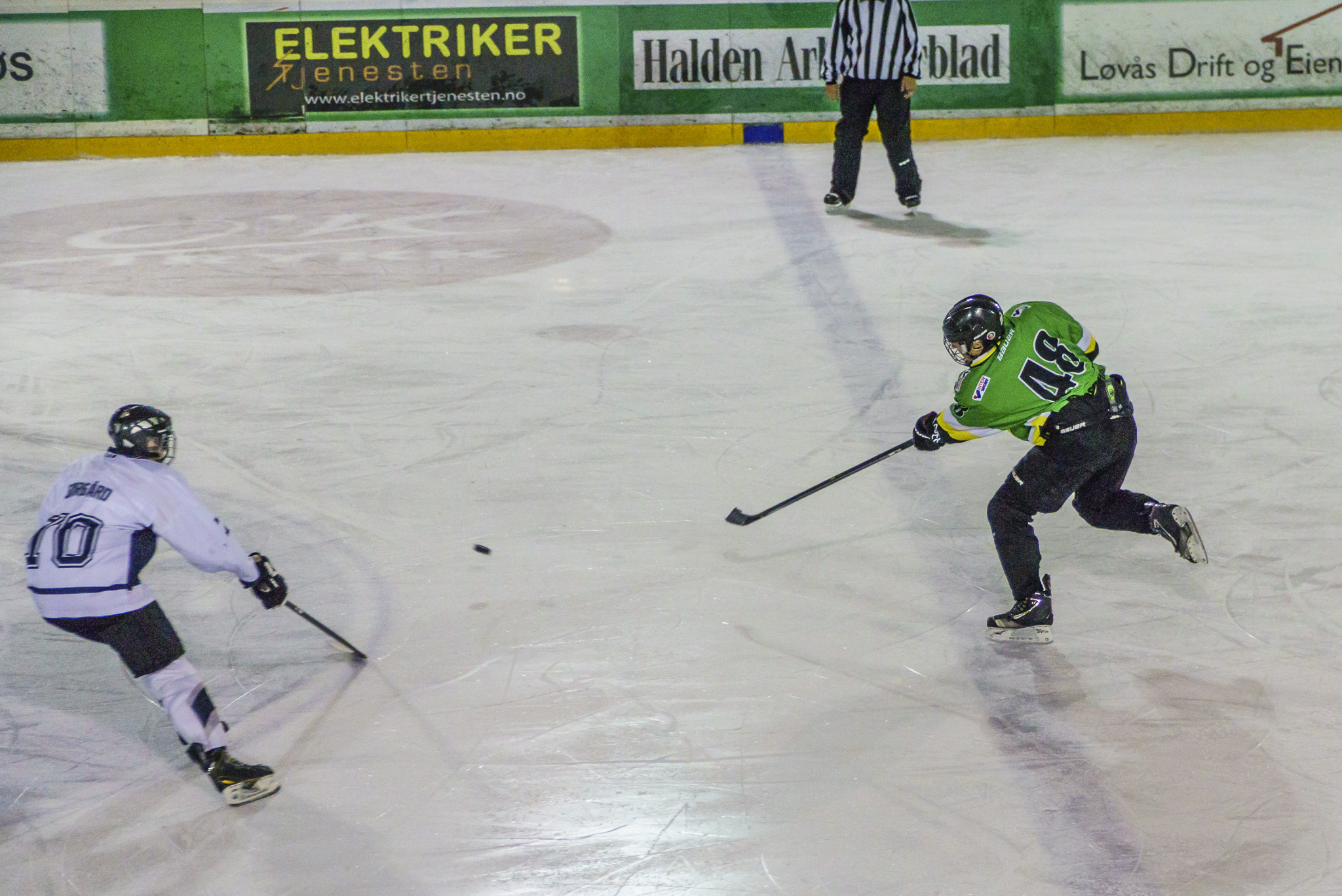 Det er faktisk mange år siden sist jeg var i Halden ishall, men nå hadde tiden kommet for et nytt besøk. Sønnen har tatt opp ishockey igjen og spiller på et lag som heter Tigers. Dette er voksne folk som har dette som hobby og trening. Jeg skulle sitte i sekretariatet for dem og da ble det ingen tid til foto så bildet her er fra kampen som ble spilt rett før de skulle på.