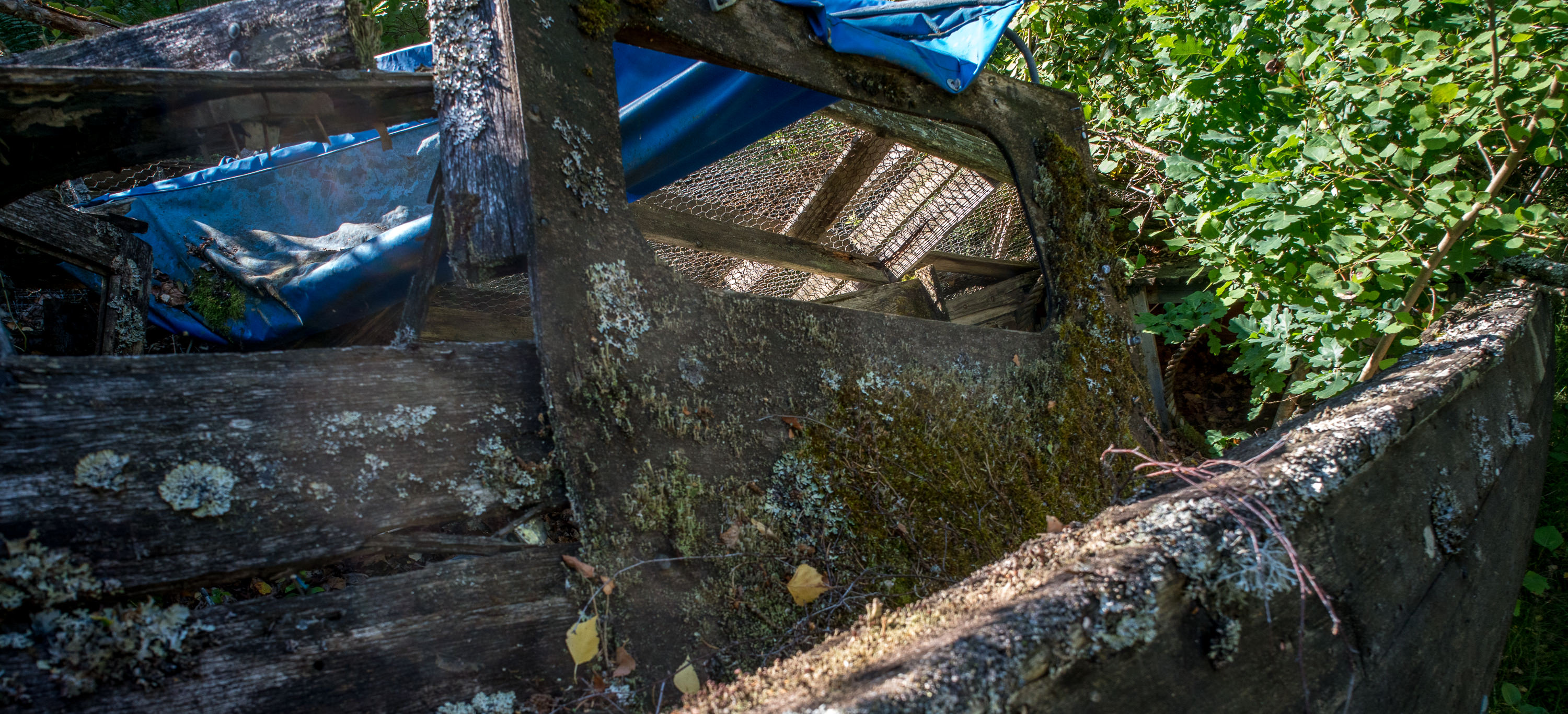 På bildene her ser dere at jeg fant en gammel trebåt som lå på denne gården og den har nok ligget der lenge. Det meste av båten hadde råtnet, men litt av skroget stod igjen.