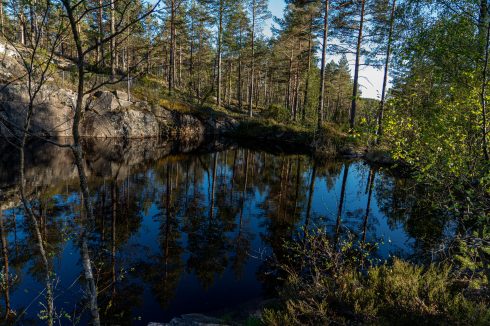 Vi parkerte her og ruslet innover i ca. 25 min rolig gange før vi fant steinbruddet. Selve bruddet er i dag fylt med vann og jeg hørt at brannvesenet hadde benyttet vann her i fra ved en brann i området for noen år siden.