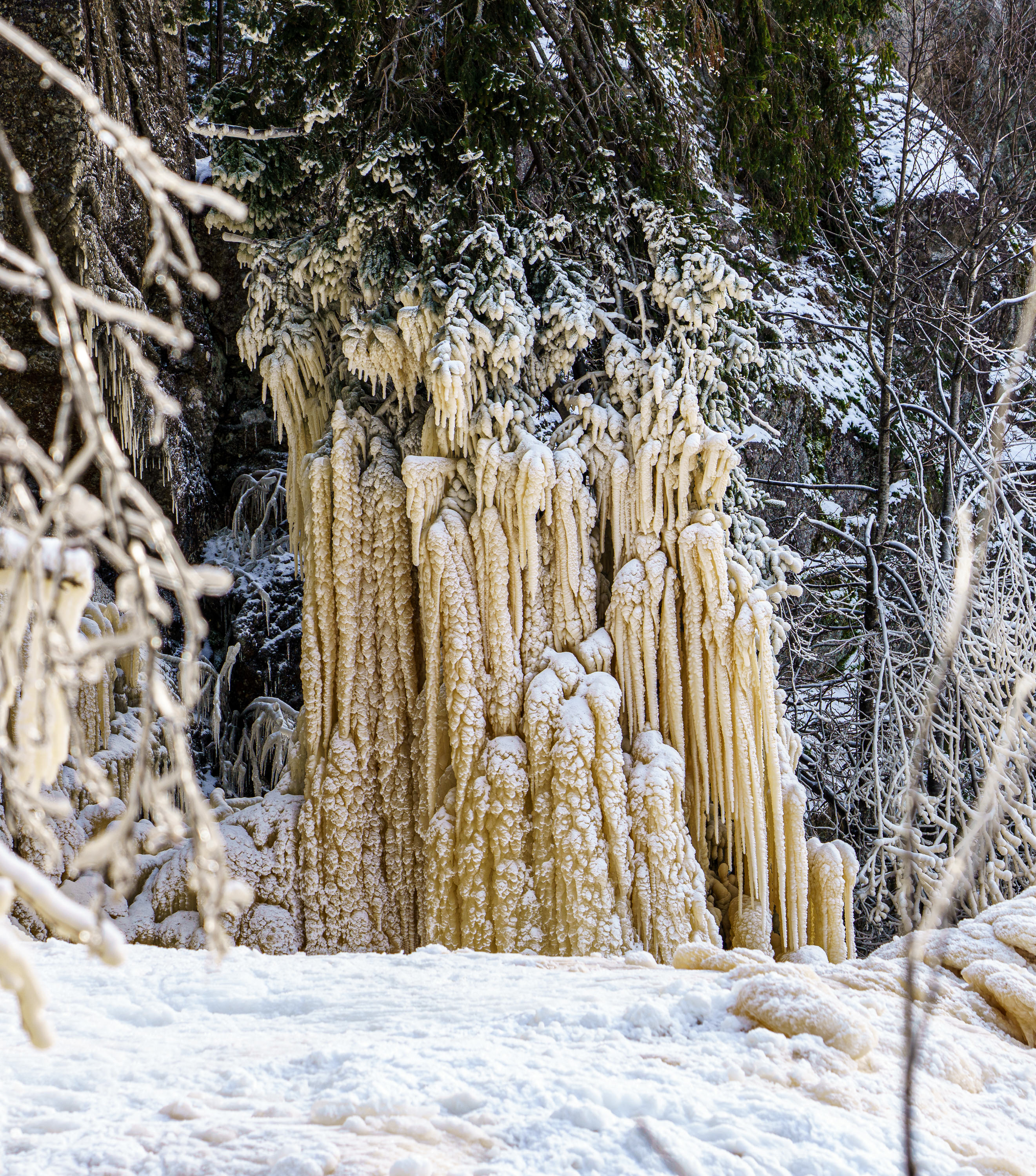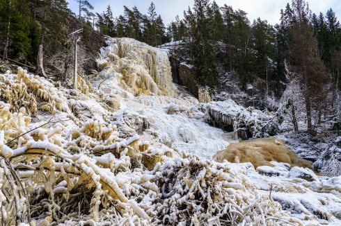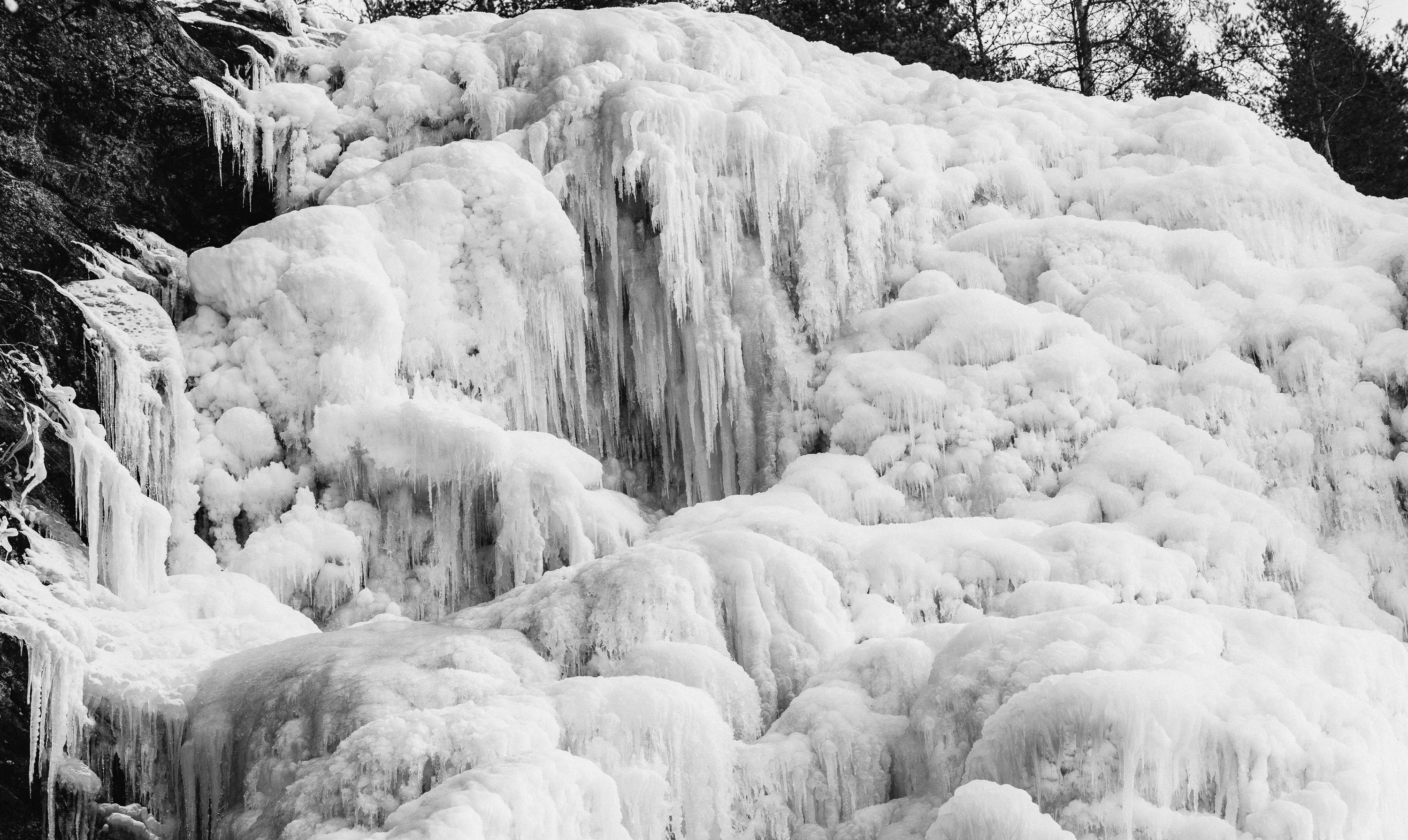 Det blir en del turer hit gjennom året og det er gøy å få med seg fossens skiftende vannføring og som nå – gjenfrosset.