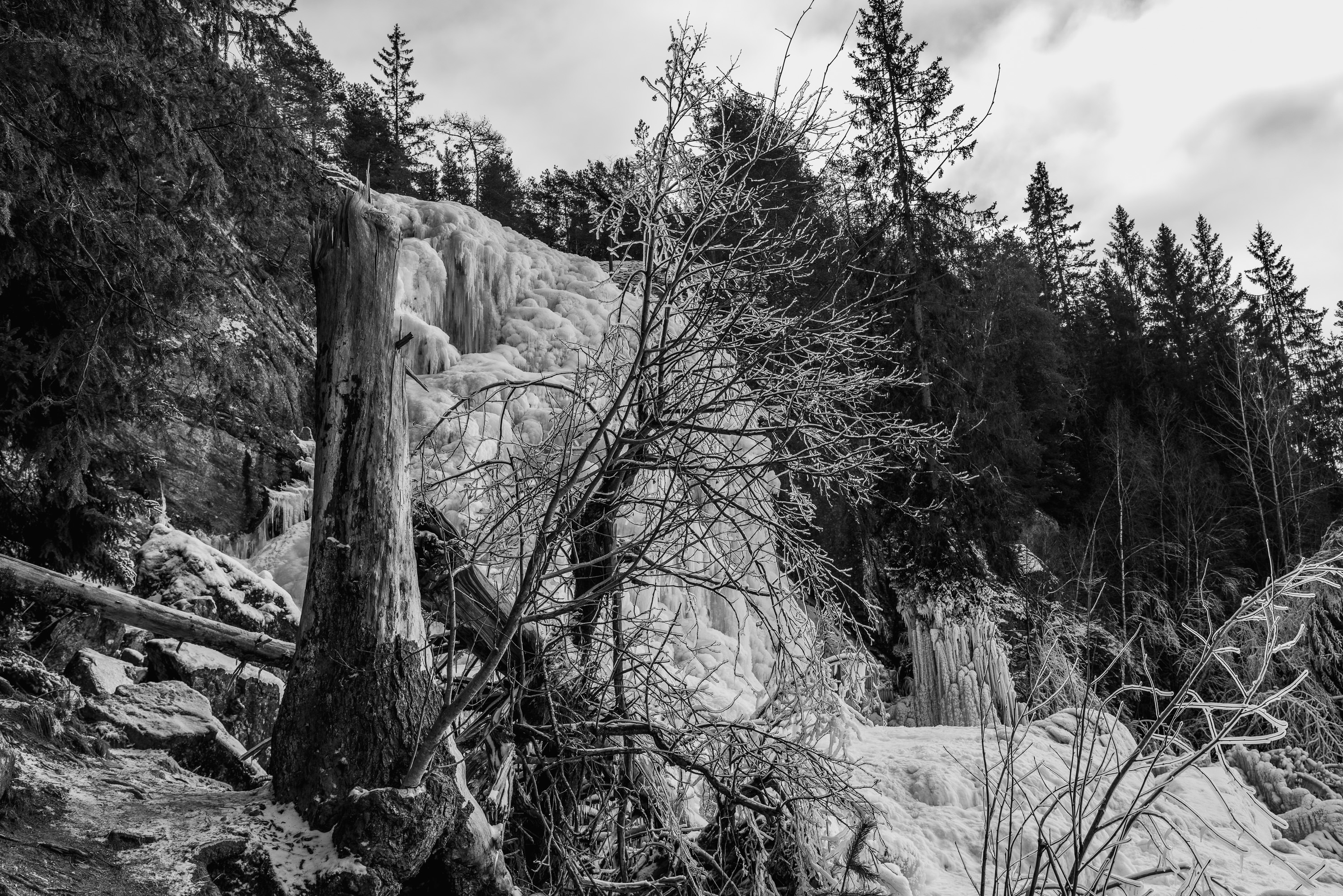 Mandagen startet med grått vær, men vi bestemte oss for å ta en tur ut til fossen for å se på den. Om vinteren fryser den til og det er et flott skue å få med seg.