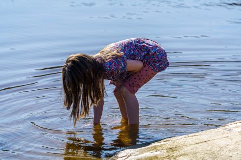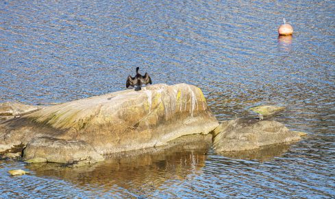 Vi hadde håpet å finne noen svaner der ute og hadde tatt med mat til dem, men de glimret med sitt fravær. Imidlertid var det ganske folksomt i Pina og tre yngre jenter tok seg et bad og svømte litt. Tøft!