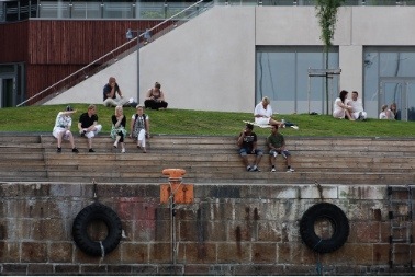 Overlat lå og satt det folk på gressplenene. De gjorde ikke noe virket det som, de bare var der og nøt utsikten, sola og varmen.