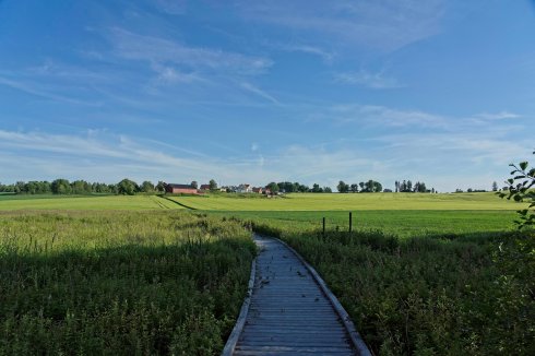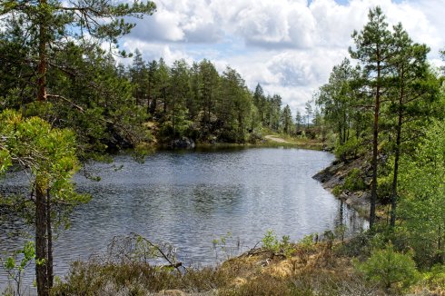 Landhevingen her har vært på ca. 185m og det betyr at havet har stått langt innover land og rester etter det finner man overalt i naturen i dag.
