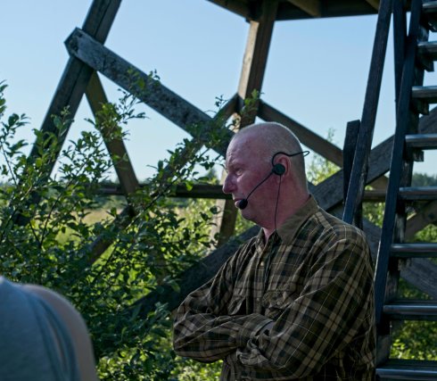 Vi gikk den gamle veien bort til skolestua og deretter ned til fugletårnet hvor Kjell Hagen informerte om stedets fugleliv.