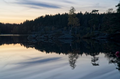 Torsdag kveld 5. okt dro kameraklubben ut på en kveldsutflukt, slik vi gjør en gang i måneden. Været var bra, blå himmel og vindstille. Da passet det fint å ta en tur opp til ett av vanna utenfor byen og der vente til det blir mørkt, noe som skjer fort på denne tiden av året. Vi hadde medbrakt, som vanlig, innbakte pølser og kaffe. På denne tiden av året er det lov å tenne bål og det ble gjort. Lystige flammer fra bålet spredte seg utover stranda og mørket senket seg i horisonten. Slikt kan det bli bilder av.