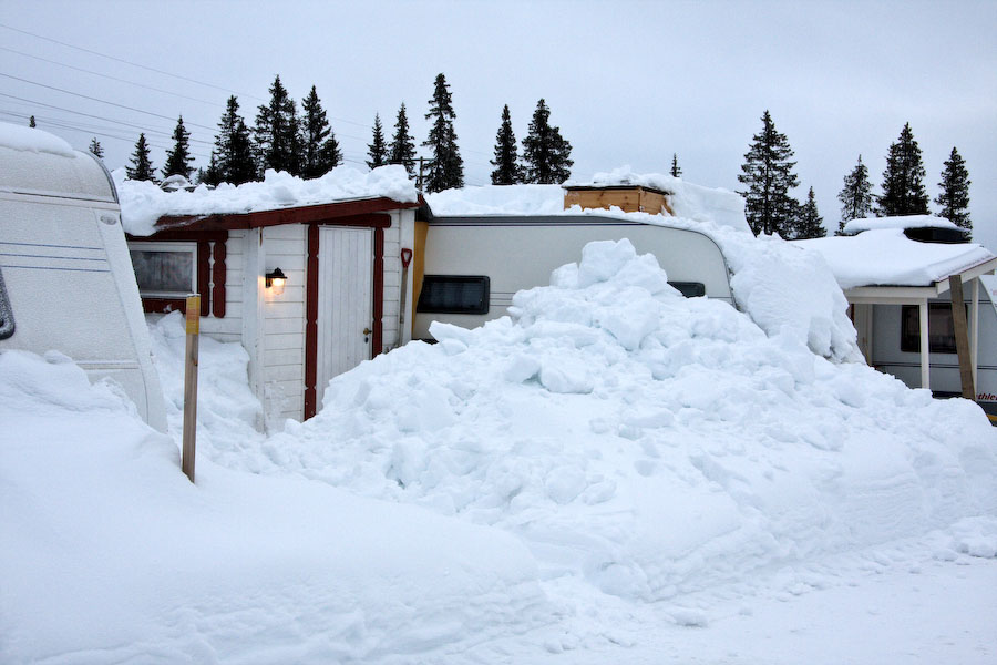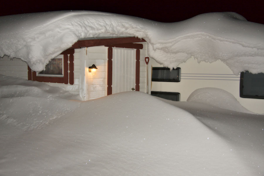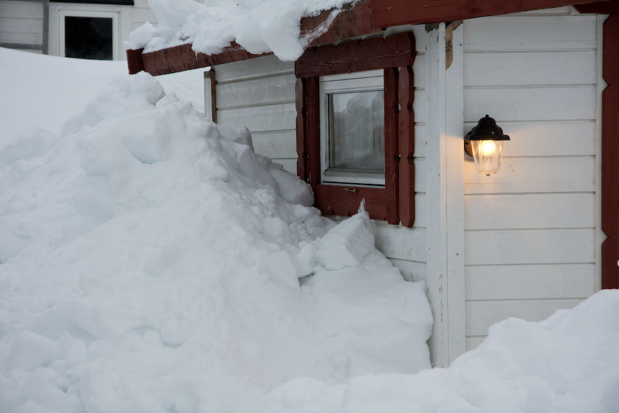 Slik så det ut forrige vinter da jeg stakk innom. Det tok en stund å komme seg inn da. Taket var tungt å måke.