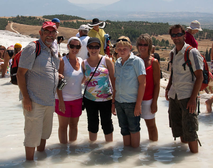 Familie og venner samlet i PamukkaleTypisk motiv fra Pamukkale