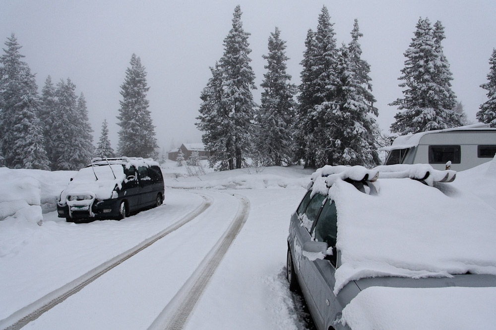 Som man kan se av bildet ligger det mye snø rundt vogna og sola vil nok måke det bort etterhvert.