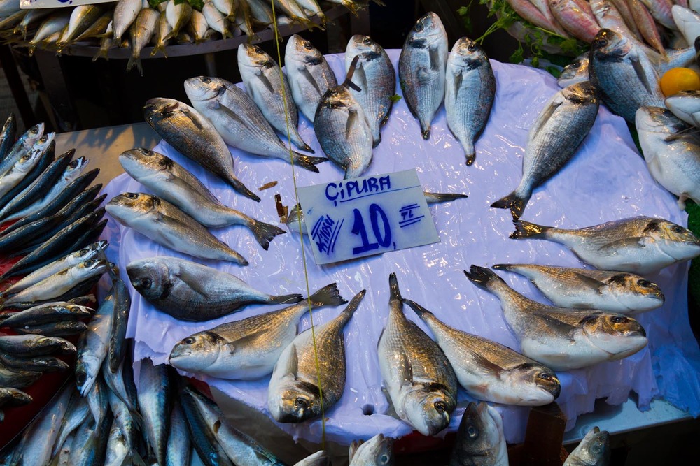 Bildet er fra en av de mange fiskebodene vi så. Slike markeder er det ok å gå rundt på.