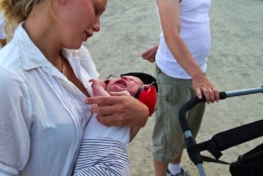 Ikke alle tar dette høytidelig, men her kom et par musikkglade foreldre som ikke drøyer så mange ukene etter en fødsel før de stiller opp med godt beskyttede unger.