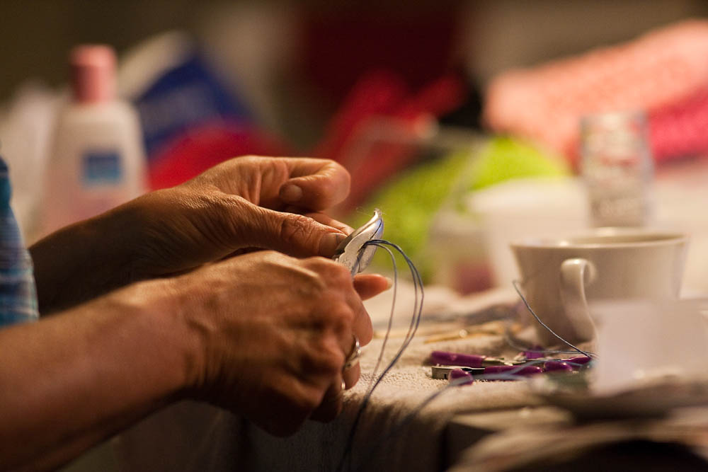 Bildet er av kona som sitter ved arbeidsbenken og holder på med smykker. Skarphetsdybden på en slik blenderåpning er ikke stor, men bilde blir det jo.