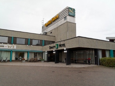 Det er litt «mindre» vær i dag enn i går. Flagga står rett ut og det er grått. Akkurat nå sitter jeg nesten alene i frokostsalen og nyter en kopp kaffe. Ved ankomst her i går kveld var det tomt på parkeringsplassen og alt virket dødt og stengt, men det var det heldigvis ikke. Lenger bort i salen her sitter tre tyskere i arbeidstøy og prater lavmelt over en kopp kaffe. Ellers er alt stille.