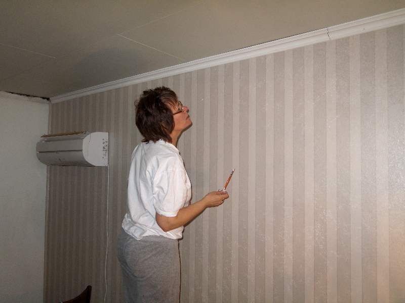 Et par dager hjemme betyr å gjøre noe annet enn man gjør på jobben. Kona har alltid noe på gang og siden vi var ferdig med entreen tidligere i våres var det stuas tur til å få gjennomgå. I høst kom det en stabel med tapet fra Tyrkia og nå kommer den til sin rett – på veggen. Her er vi igang med den ene veggen og etterhvert kommer lister på plass og bokhylla bæres tilbake der den skal stå. I morgen gjenstår bare den andre hovedveggen og da blir nok hele den stua ferdig i løpet av helga.