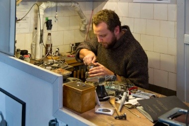 Det er mange verksteder og atelieer i sentrum her og vi gikk innom flere. Her var det klebersteinskrin, malerier, porselen og annen kunst samt en gullsmed som het Tomas Sættem. Der falt kona for en jernring med gull og diamant. Stilen var røff og det er gullsmedens eget design. Han lager ringene etterhvert som de selges og ikke to er helt like. På bildet sitter han ved benken sin og det er alltid noe å pusle med. Er du innom Son så besøk verkestedet hans.Han fikk en ring mindre i utstillingen og lommeboka mi ble virtuelt lettere. Plastpenger veier ikke så mye lenger:-)