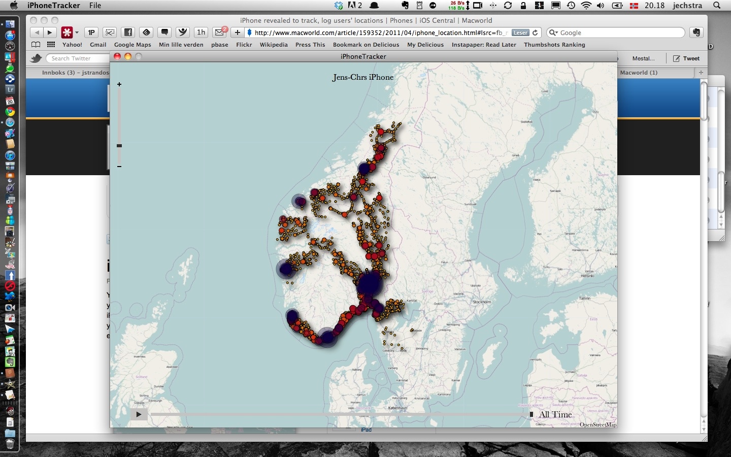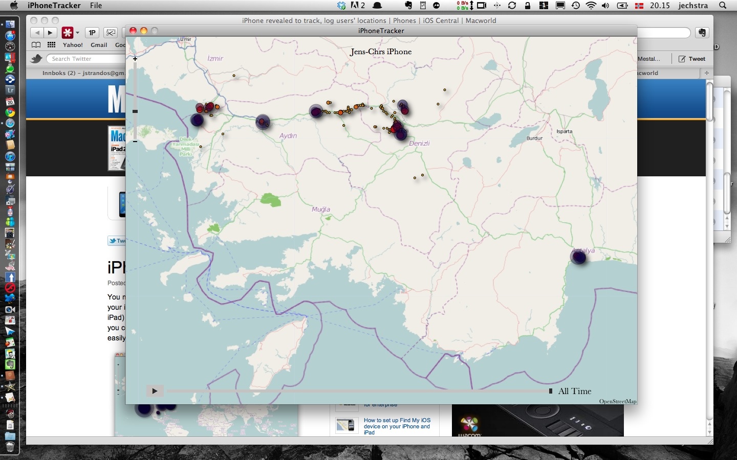 Her kan du se siden til et program som kan lastes ned og kjøres på din Mac og du vil se hvor du har vært med telefonen eller iPaden din.