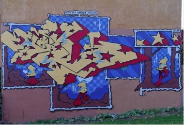 Rett bortenfor der jeg bor er det to vegger som det males på. Dette er siste tilskuddet der. Dette er tydlig gjort av folk som vet hvordan slike ting skal lages.