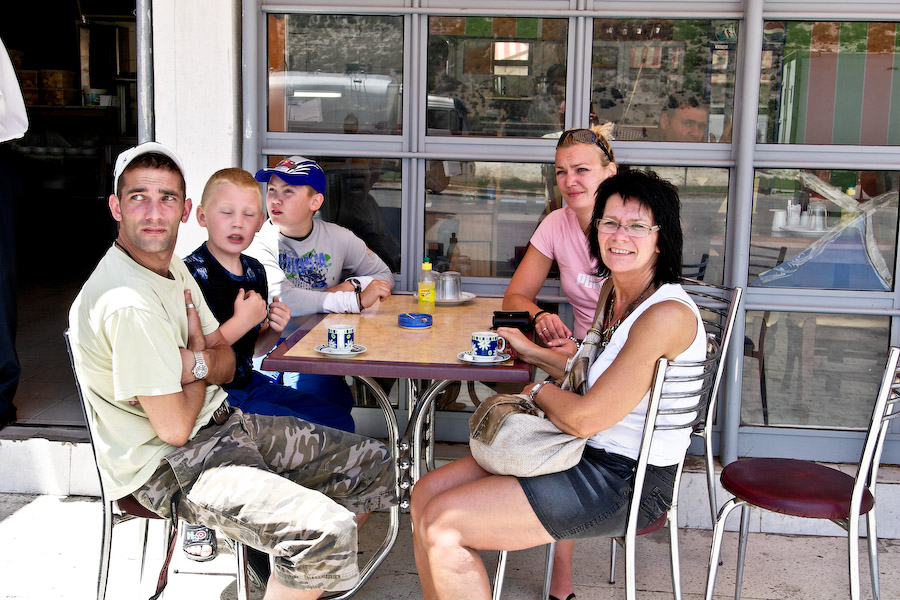 Gjestfriheten til tyrkerne var utrolig. Vi stoppet for å ta en kopp kaffe og umiddelbart var det to stykker som gikk i gang med å vaske bilen vår. De holdt på å vaske en stor trailer der, men da vi parkerte med støvete bil flyttet de bare sprøyter og såpe over på vår, vasket den og brukte til og med avispapir på rutene for å få de fettfrie. Vel ferdig fortsatte de med traileren igjen. Jeg ville jo gjerne betale for dette, men det var ikke lett. Til slutt fikk jeg snakket med kelneren og lagt igjen noe til de. Senere skulle vi oppdage at på store supermarked var det vanlig at bilen din ble vasket mens du var inne for å handle. Ja det er også en måte å dra kunder til seg på. Underveis så vi masse boder langs veien hvor egentlig alt mulig av mat og varer var til salgs. 2007-07-15-img_8263_out.jpgVi stoppet et sted hvor det var boder med moreller. De smakte meget godt. Jeg bestilte en kilo til oss og betalte vel antagelig litt for mye, men det utgjorde ikke mer enn en 10 i norsk valuta. Resultatet var at bonden selv kom etter oss og vinket, det var kona som stod i boden og solgte, og vlle ha oss tilbake og inn i haven hans. Der var det masse trær med moreller. På bildet ser du at han har satt frem stige og holder frem en gren full av moreller for min kone. Om det var det at vi var turister på «villspor» midt inne i Tyrkia eller at jeg hadde betalt for mye aner jeg ikke, men gjestfriheten var enorm, Han dro ned den ene grenen etter den andre og bød oss flotte store klaser. Vi ble mette. Vi skjønte ikke et ord og han kunne ikke engelsk, men kroppspråk tar man ikke feil av. Vi begynte å skjønne at oppholdet skulle bli bra!