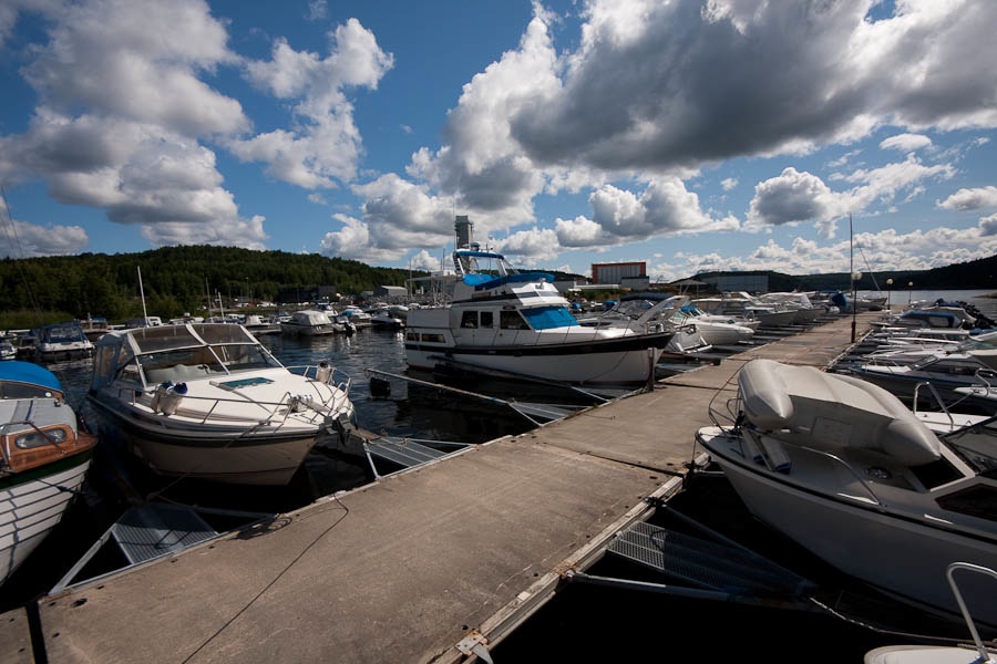 Utover ettermiddagen skyet det over og styggværet kom uten at det nyttet å blåse bort skyene. Da var det bare å skalke alle luker og sette kursen hjemover. Det tordnet og regnet litt, men lettet heldigvis. Her er vi på vei inn Iddefjorden og kan se Svinesundbroa foran oss.