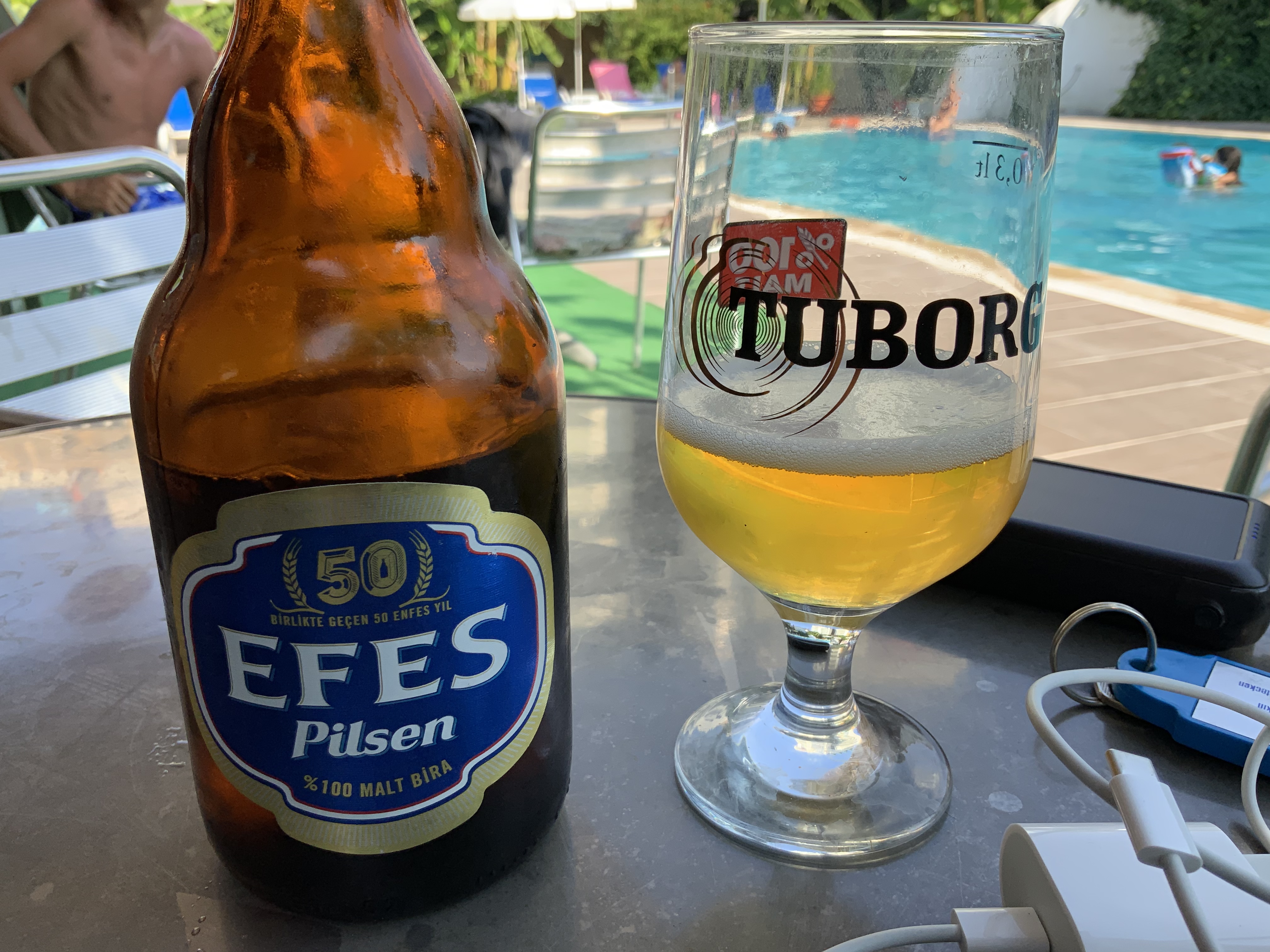 I varmen er det viktig å få inn nok væske heter det og jeg drikker alltid mye vann her nede, men man må også smake på det nasjonale brygget Efes.