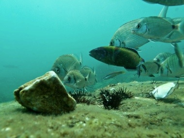 Da vi knuste et par kråkeboller ble det livat med fisk rundt oss.