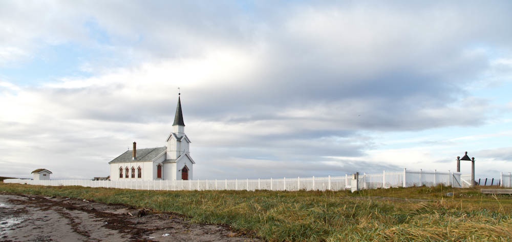 På vei fra Vadsø til Varangerbotn stoppet jeg ved Nesseby kirke for å ta noen bilder. Det var nydelig solskinn som brøt gjennom skydekket og kirken lå badet i et nydelig lys. Samtidig med meg var det også andre med fotointeresse der. Ute i vannet gikk det en dame med et akvarium i hånda og tittet ned i vannet.