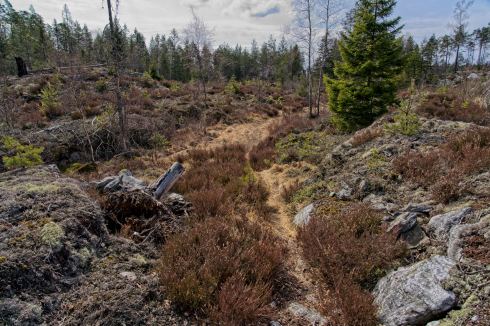 Det var en fin tur med litt varierende terreng. Vi hadde tenkt å følge en av turene til Morten Paulsen som var en rute på 8 km, men folk vi traff på veien der frarådet oss den ruta nå. Det hadde vært mye hogst og merkingen av enkelte løyper var dårlig fikk vi høre. I stedet gikk vi gjennom hyttefeltet og i nordenden av Holevannet tok vi en avstikker opp til Stutetjern. Deretter gikk turen tilbake til Holevannet og vi fulgte det resten av veien tilbake. I følge appen til Norgeskart som ble det vel 7km. Se nederst for nøyaktige deltaljer.