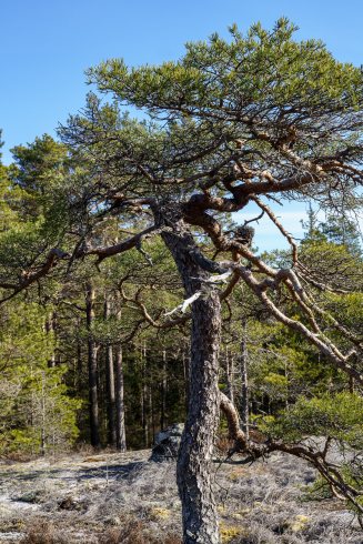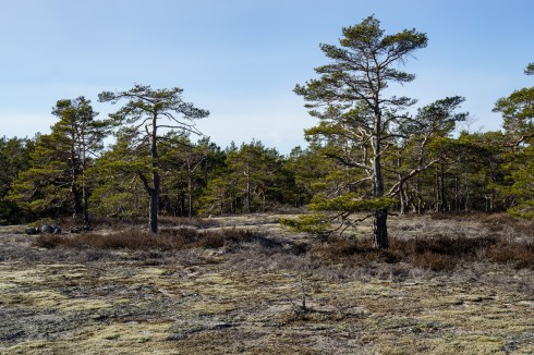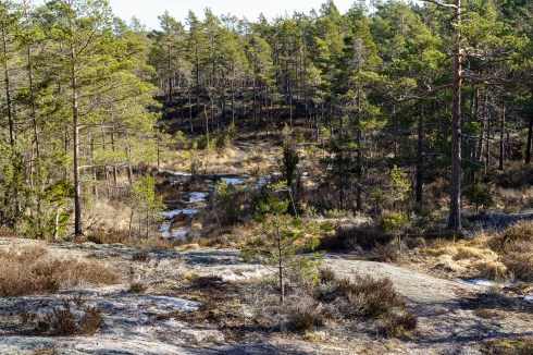 Det er ingen stor fin skog inne på området her. Skogen består for det meste av mange krokete og små trær. Det er mye fjell og lite å gro i her.