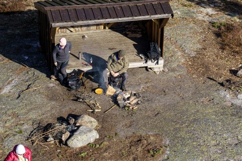 Det ble ingen sjokoladebit i solveggen på hytta i dag. Grunnen er meget enkel, vi har ikke noe hytte, bare en campingvogn og der var det ikke sol. I stedet dro nærmeste familie som kan treffes i disse tider, en tur ut i skogen for å gå tur. Det ble en fin tur, men det var litt kaldt i dag. Barnebarna holdt varmen ved å sykle. Lunsjen ble en stående bufé i det fri og maten smaker ekstra godt da.