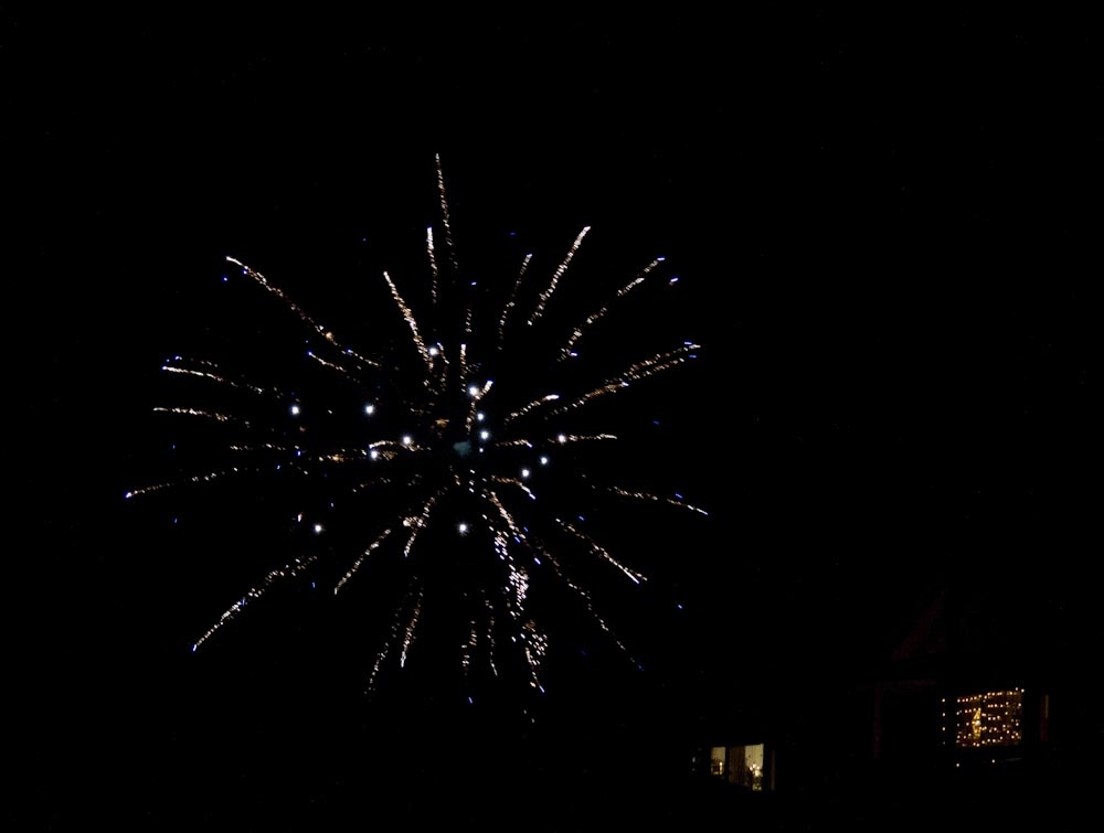 Fra nyårets fyrverkeri. Det første bildet ble tatt før kameraet ble satt på manuell innstilling.