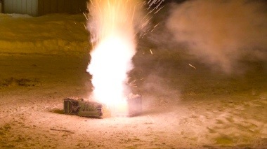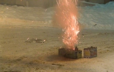 Raketter er ikke lenger like in hos myndighetene så nå er det bakkebasert fyrverkeri som gjelder. Man kan god og full bøye seg over boksen og fumle med fyr og få alt i fleisen allikevel. Merkelig lover som lages. Her har i allefall noen fått fart på boksen og har rukket å trekke seg tilbake.