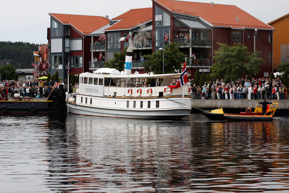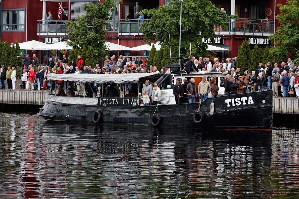 Det var rene 17.mai stemninga i Halden i formiddag da Turisten og Tista la til kai ved gjestebrygga.