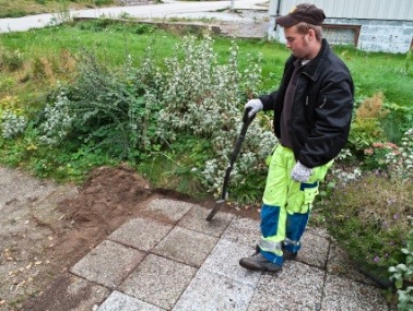 I helga hadde vi Stian, nevøen vår på besøk. Han elsker å jobbe med traktorer, graving, gårdsarbeid og alt mulig i den retningen. Nå var det skoleferie og han kom for å gjøre ferdig noen heller i gårsdplassen vår.