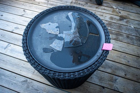 Det var et islag på alt som hadde hatt vann på seg i går kveld og her kan du se hvordan kjøleboksen hadde det i dag tidlig.
